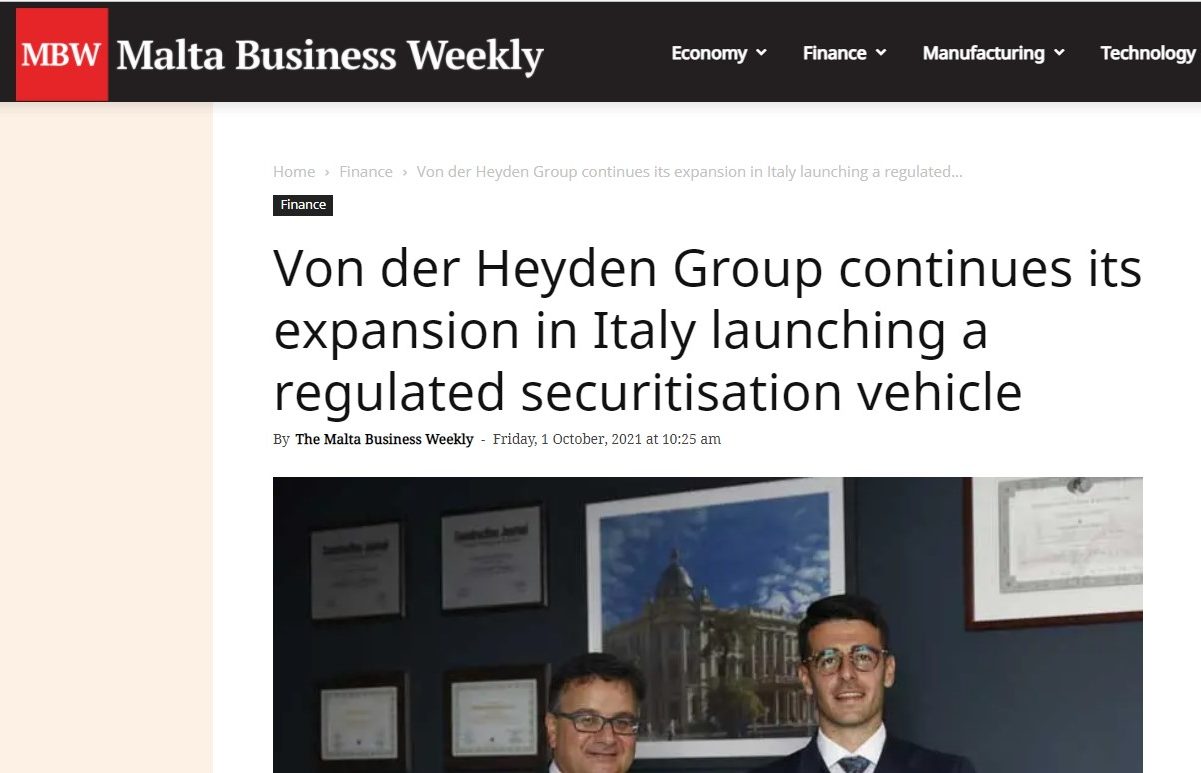 “International investment firm Von der Heyden Group announces its continued expansion after launching a regulated Securitisation Vehicle in Italy…”